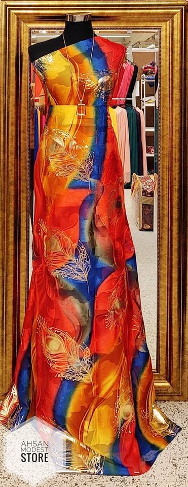 Dirac dress (3 meters long)  with a matching scarf and underskirt.